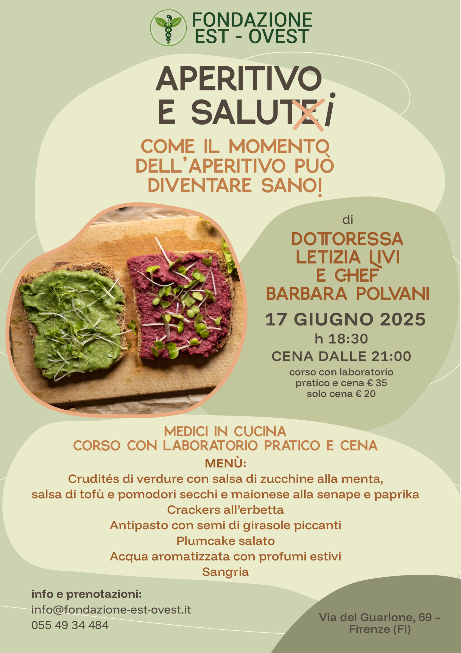 Per non rinunciare a tutto questo pensando sempre a mangiar sano, l’appuntamento mensile con medici in cucina di martedì 17 giugno sarà dedicato proprio a questo magico momento “prima di cena”.