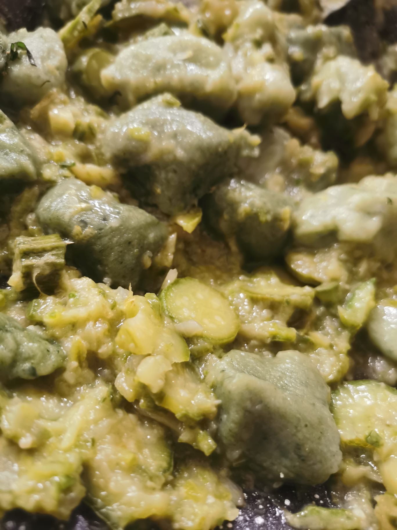 Gnocchi di patate all’ortica con crema di zucchine e menta.