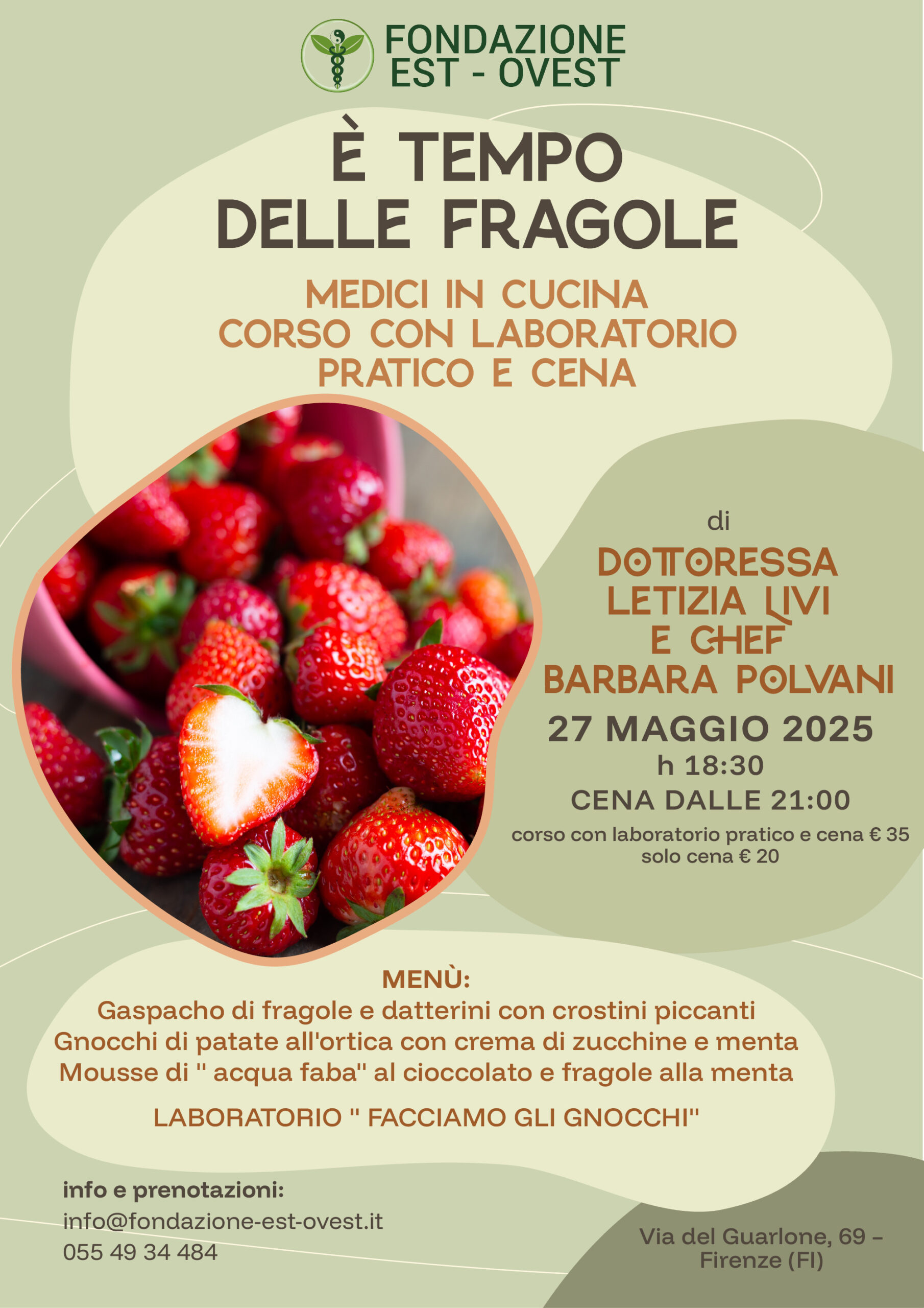 È tempo delle fragole – Medici in Cucina Corso con Laboratorio pratico e cena: il tutto in una serata dove salute e gusto si incontrano tra i fornelli.