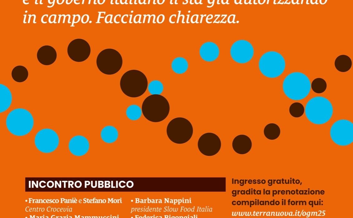 Fondazione Est Ovest e Terra Nuova organizzano (presso gli spazi della Fondazione in via del Guarlone, 69) un incontro pubblico dal titolo: “Nuovi Ogm: cosa ci aspetta? L’UE accelera la deregolamentazione e il governo italiano li sta già autorizzando in campo: facciamo chiarezza”.